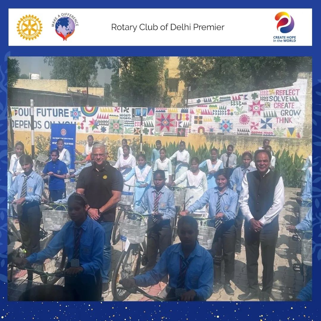 Rotary Club of Delhi Premier successfully donated 50 cycles to village girls commuting daily to attend college for higher education.