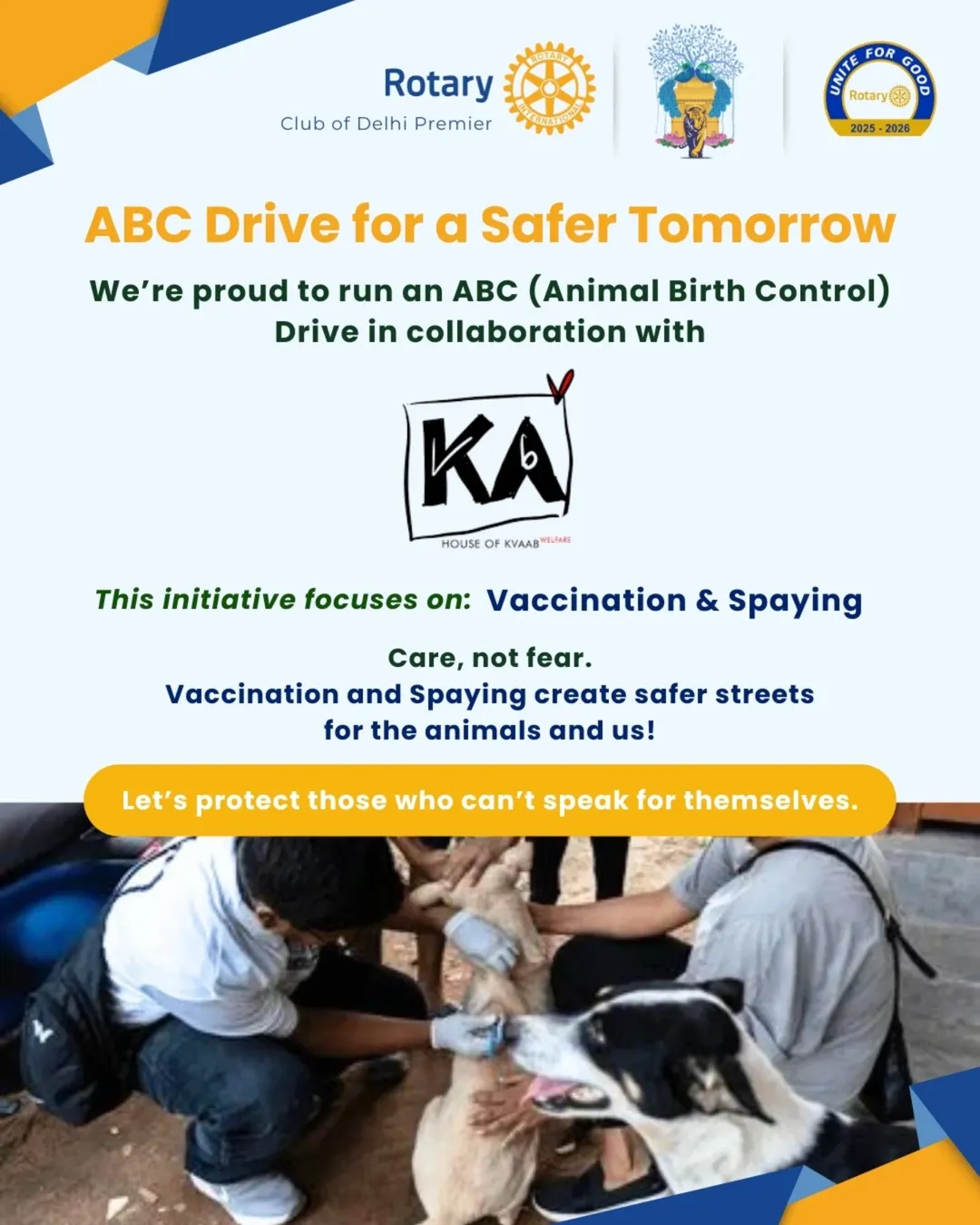 Heartfelt thanks to Rotarian Ritu Memani for helping initiate the Animal Birth Control drive and for supporting this winter effort, helping create safer streets for both animals and people.